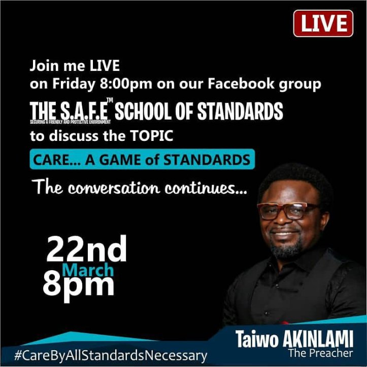 Join the group TODAY RIGHT NOW and RIGhT HERE https://www.facebook.com/groups/576030869535441/?ref=share and be part of The S.A.F.E™ School of STANDARDS and join The Preacher, LIVE on Friday, March 22, 2019 as he continues the conversation on the rules of the CARE as a GAME STANDARDS …