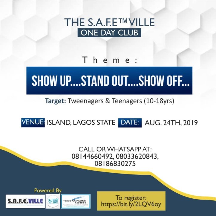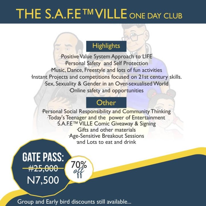 Having shared these things with thousands of young people over the years on local and international platforms, with outstanding and transformative results, I am emboldened to share same again at our S.A.F.E™VILLE ONE-DAY Club.