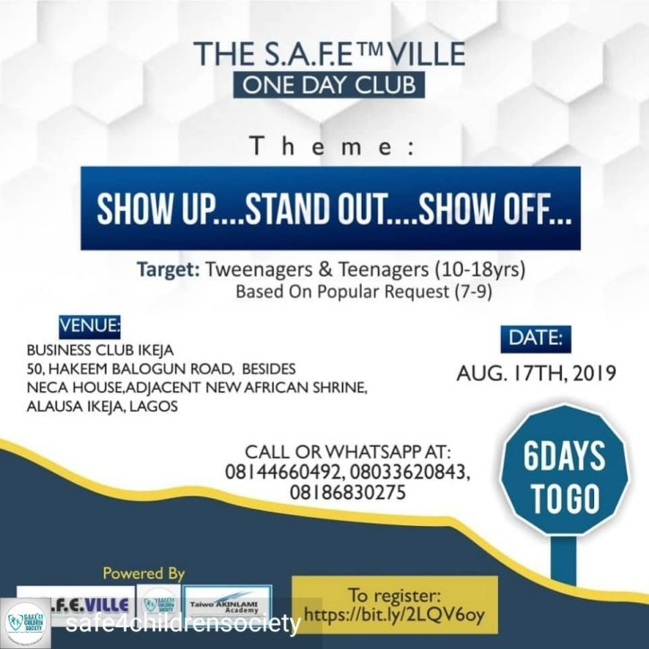 Before 1997, I was the chief of sinners, leading a life so wayward to the glory of the enemy of my soul. My thoughts were made of dirts; my words were couched in the depth of frivolities; my deeds clothed in many colours of vanity; trouble was my forte; purposeless was my ardent companion; my life, was of course a city but it was a one without an inch of a wall. By my lifestyle, prison, death and mental illness beckoned at me vigorously and rigorously and rightfully so too.Then Sunday, February 16, 1997, I encountered the person of Christ Jesus.I was checked into the intensive care unit of the change laboratory for series mind surgeries and therapies. I have since been checked out of the ICU(though work in progress) and I have a great story to tell of the seemingly impossible personal change, I have graciously encountered. Today, I define change as an ever present possiblity for any human being, who is ready to take responsibility.I have since helped countless of young people and their families to manage change and direct or redirect them on the right course.One of the tools I found and used for myself is what I call My Personal Constitution, under which my primary responsibility is to DEFINE and DEFEND my Personal Territorial Integrity, having elected myself Commander-in-Chief of the Armed Forces of my life. It is my greatest life lessons that you are going no where meaningful in life except you DECLARE and DESIGN the END from the BEGINNING.At our one S.A.F.E™VILE™ ONE DAY CLUB holding on Saturday, August 17(Mainland) and Saturday 24, (Island), my team and I will be sharing with the precious participants (7-9 & 10-18) the template for developing their Personal Constitution.It is time to register your precious young one right here https://bit.ly/2LQV6oyI personally look forward to receiving them at our S.A.F.E™VILE™ ONE DAY CLUB.Do have an INSPIRED day.Yours IN THE BEST INTEREST OF THE PRECIOUS AFRICAN CHILD,