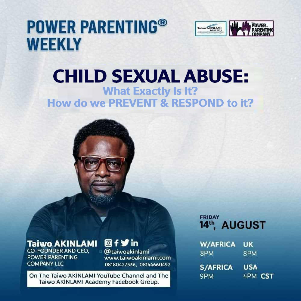 Today, Friday, August 14 at 8.00PM(WAT) STRICTLY on our YouTube channel http://bit.ly/TaiwoAkinlamiYouTubeChannel I will lead the Child Sexual Abuse Conversation like you have probably not heared it before, dismantling long-held but unproductive streotypes and proferring RADICAL but easily applicable solutions.