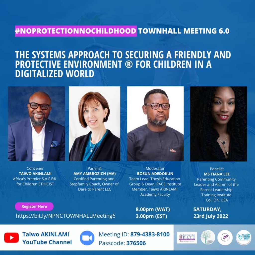 Today, Saturday, July 23, 2022 at 8.00PM(WAT)|3.00PM(EST) Amy AMBROZICH, Tiana LEE and Bosun ADEDOKUN and Taiwo Akinlami will be taking this conversation to another level. They will look at System’s Approach, the role of parents and community and best practices from other climes.
