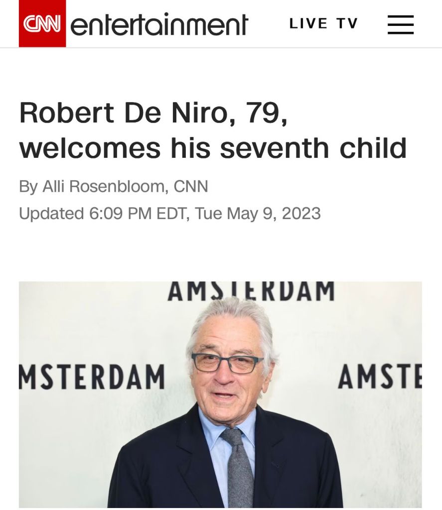 Now, here is Robert De Niro welcomes his 7th child at 79?