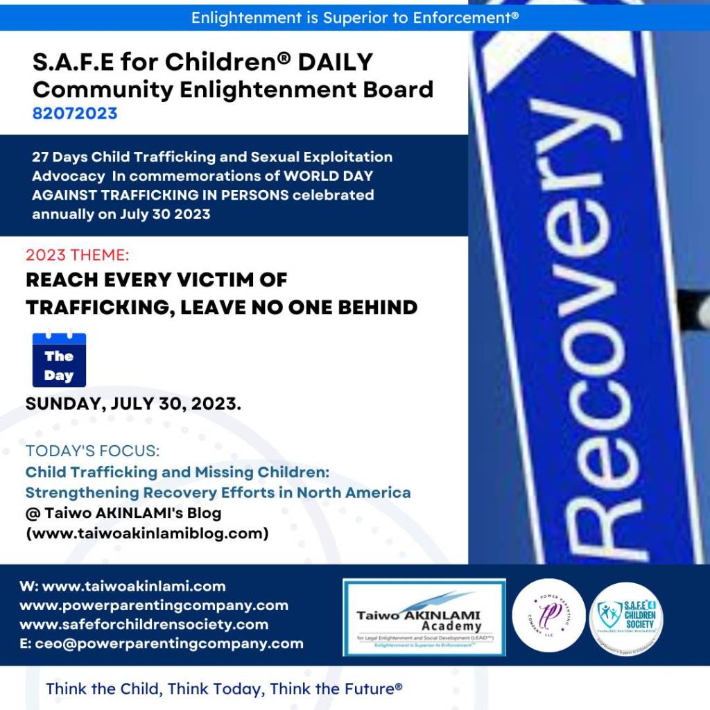 Today, we come together on World Day Against Trafficking of Persons to raise our voices against one of the most heinous crimes: Child Trafficking and Missing Children. In North America, these grave issues demand urgent attention and collective action. 💔